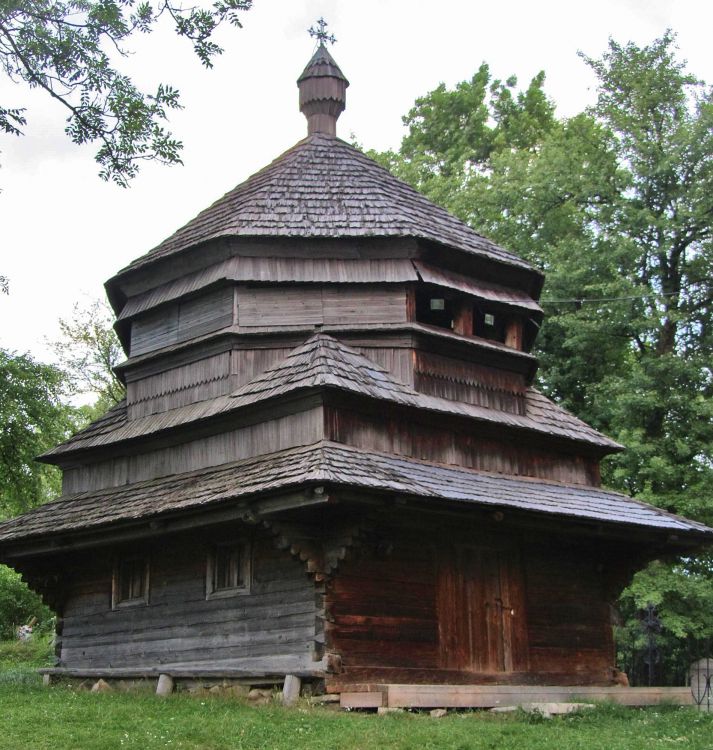 В своем архитектурном решении эта деревянная церковь трехчастная, пятисрубная, однокупольная, крестообразная в плане. Центральный сруб увенчан шатровым восьмигранным куполом с декоративной макушкой. К квадратному центральному срубу с четырех сторон примыкают более узкие боковые срубы, завершающиеся крышами с фронтонами и увенчанные небольшими макушками. Алтарь, бабинец и боковые приделы являются прямоугольными и завершаются двускатными крышами. Вокруг всех срубов церковь по периметру опоясана широкой навесом. Ее интерьер отличается своей торжественностью, здесь сохранилось несколько старинных икон, которые характерны гармонией колористики и чисто народным типажом. До наших времен здесь сохранился иконостас, происходящий от времени строительства храма. В общем, сакральная постройка отличается особой пластикой и изысканными пропорциями. Она восхищает посетителей совершенным соотношением боковых и центральных частей, гладко тесаными бревнами срубов, ґонтовыми кровлями и маленькими фонариками над ними. В ее архитектурных формах наблюдается сочетание спокойствия, величия и красоты.